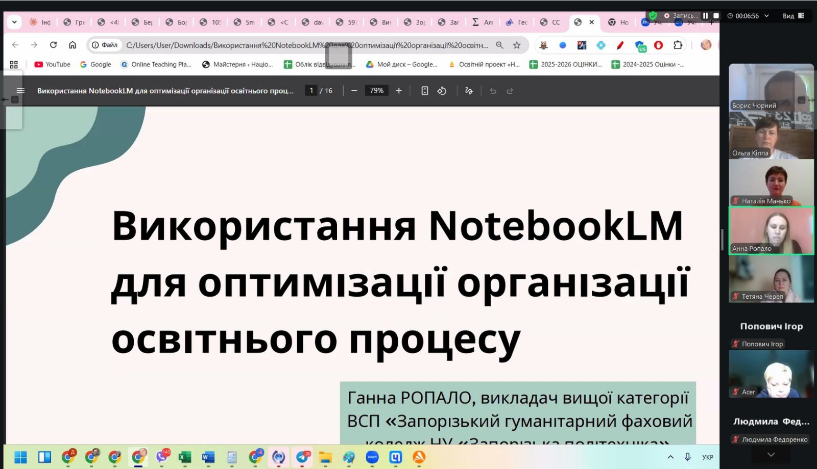 «Використання NotebookLM для оптимізації організації освітнього процесу», Ропало Ганна Михайлівна, ВСП «Запорізький гуманітарний фаховий коледж НУ «Запорізька політехніка», викладач вищої категорії.
