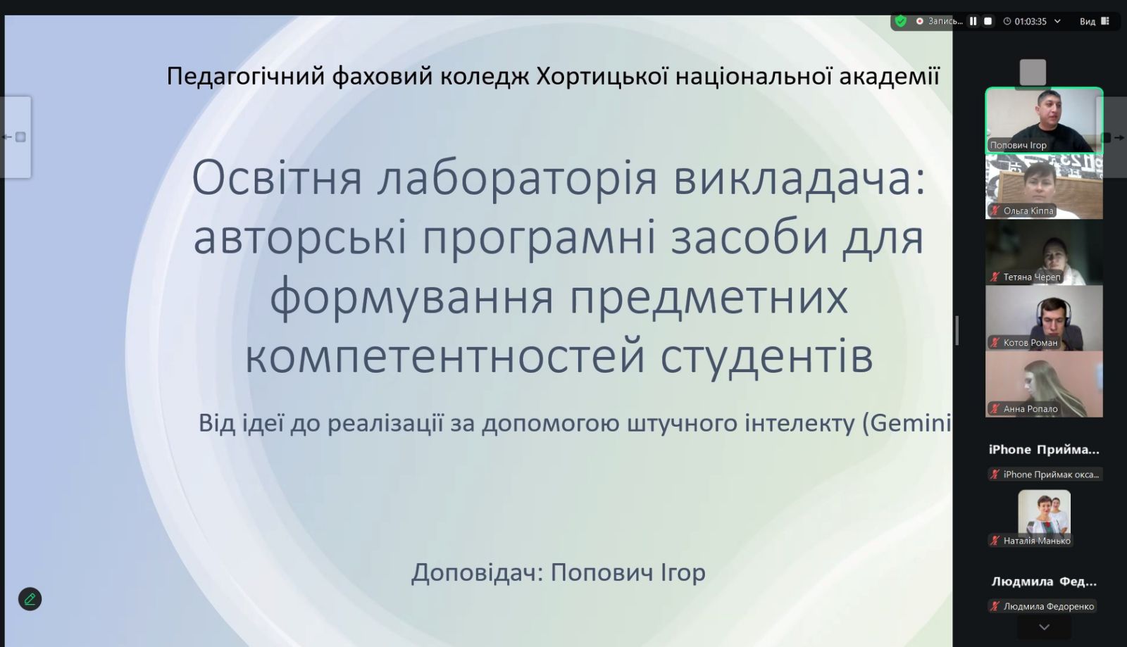 «Освітня лабораторія викладача: авторські програмні засоби для формування предметних компетентностей студентів (учнів)», Попович Ігор Федорович. Педагогічний фаховий коледж Хортицької національної академії, викладач вищої категорії, викладач-методист