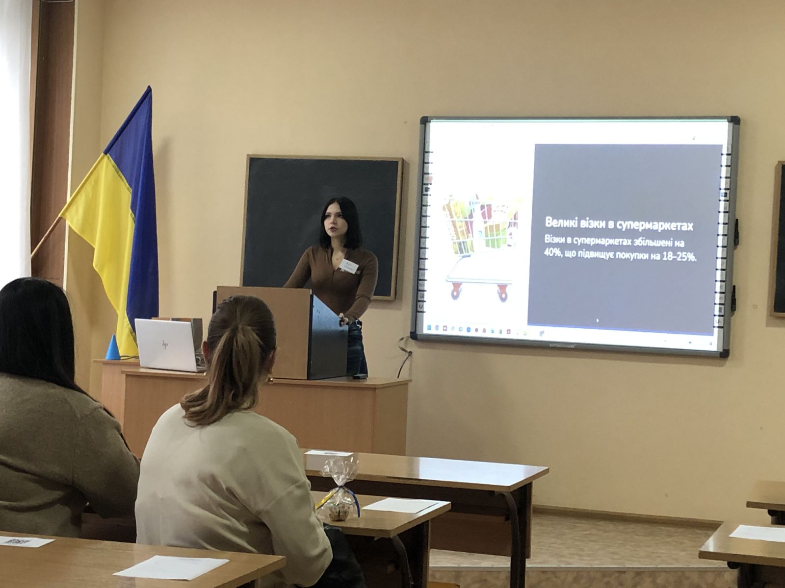Студентки ІІ курсу Алла Смирнова, Валерія Дзюба за допомогою голови циклової комісії «Маркетингу, торгівлі та менеджменту» Світлани Геннадіївни Грохи провели презентацію «Секрети, які змінюють наш вибір».Розкрили секрети, як приховані психологічні механізми, емоції, контекст і подача інформації впливають на наші рішення, навіть коли нам здається, що ми обираємо раціонально.